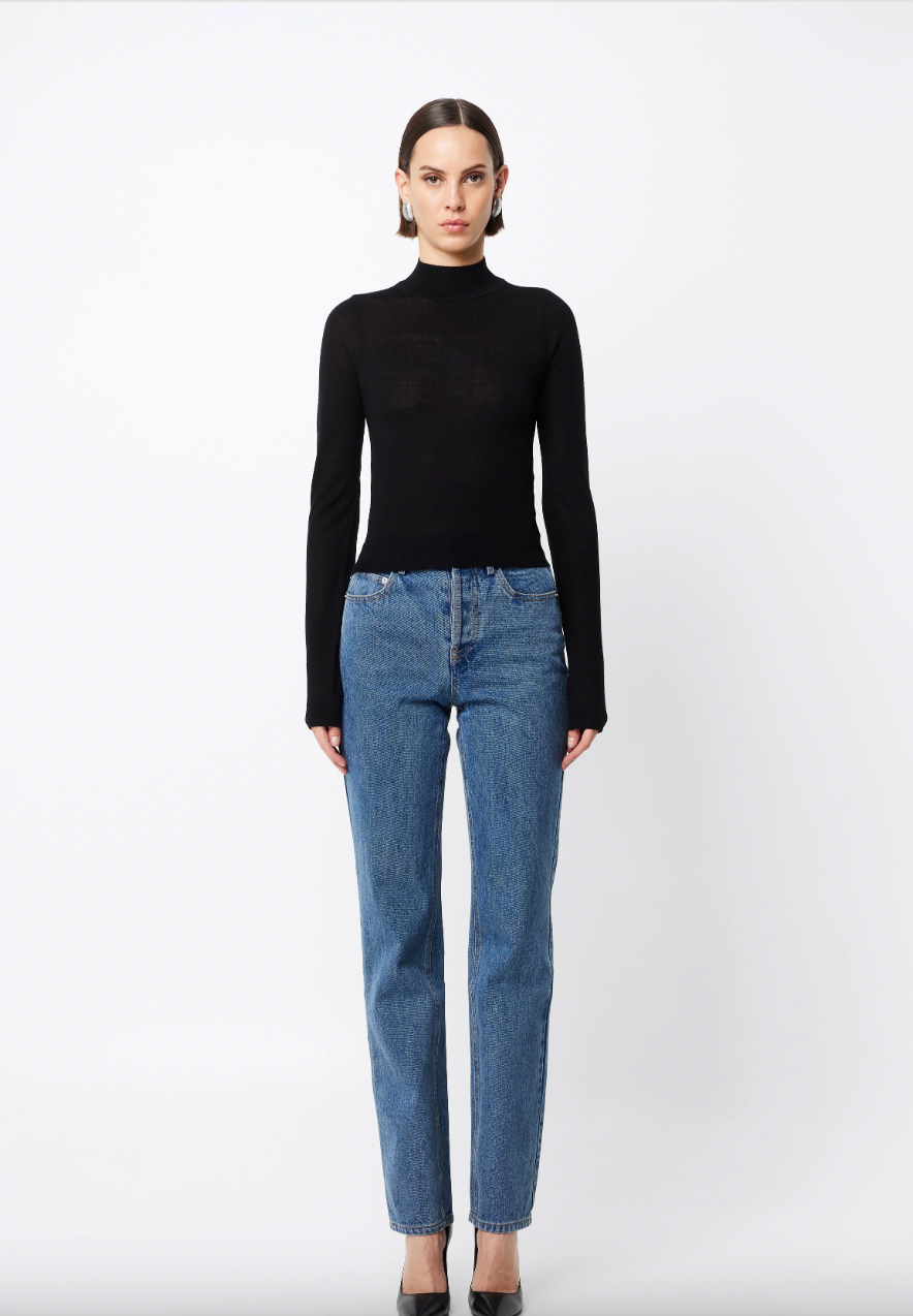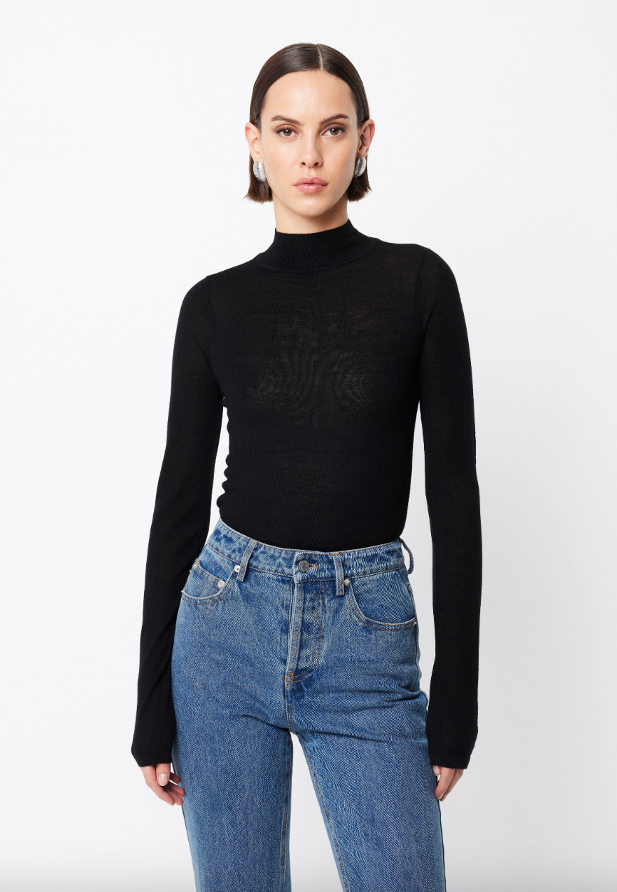 MOSSMAN - MAINE TURTLENECK MERINO TOP - BLACK